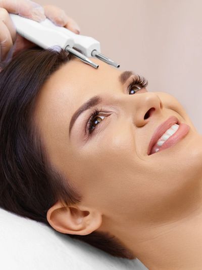 There are 32 different muscles of the face that are manipulated during the microcurrent facial treatment. The treatment lifts, smoothes, tightens and tones. Probes are used to physically move the muscle into the desired position to perform muscle re-education – the process of lengthening or shortening muscles. Having muscle re-education movements performed in a series re-trains the muscles to maintain this new contour. Microcurrent treatment allows the muscles the necessary energy to keep their tension in this new contour.